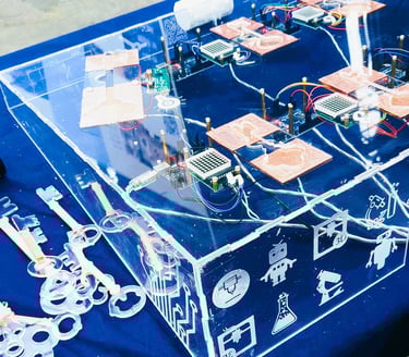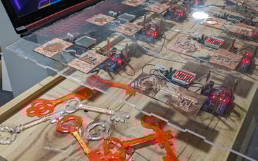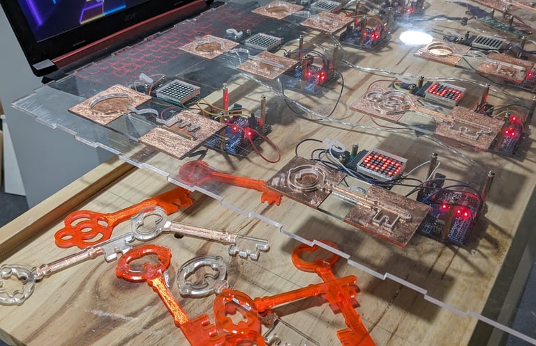 Leur choix s’est porté sur une borne interactive nécessitant l’insertion de 7 clés pour dévoiler le code d'un cryptex imprimé en 3D, qui donne un accès au coffre-fort final. Les clés étaient disséminées sur différents stands partenaires : les participants avaient 15 minutes pour les retrouver et débloquer le jeu.